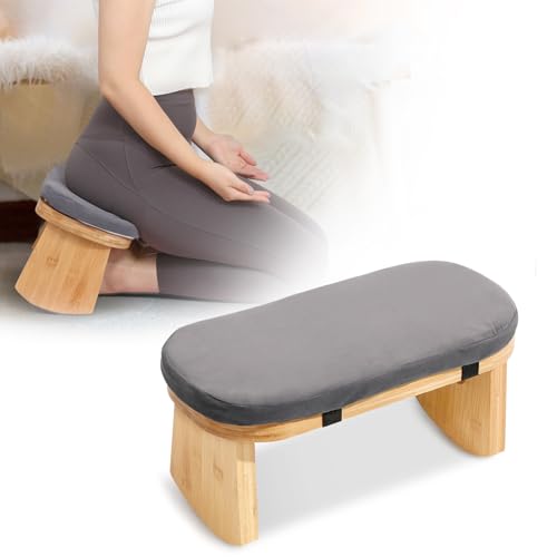 Meditation Bench, Folding Meditation Chair with Cushion, Bamboo Meditation Stool with Anti-Slip Mat, Adjustable Yoga Stool with Curved Bottom Edges, Prayer Bench