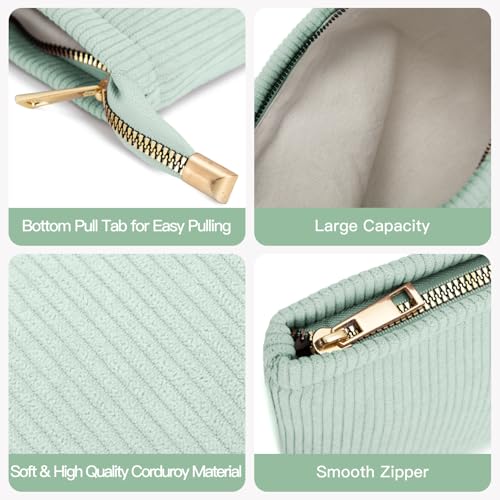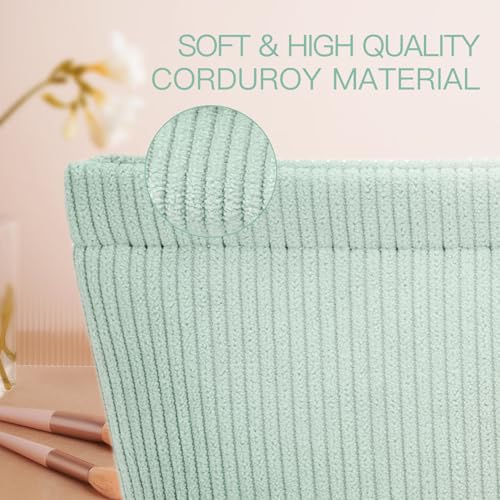 3 Pieces Makeup Bag Cosmetic Bags for Women Corduroy Travel Toiletry Make Up Brush Storage Bag Pounch Organizer Travel Essenitial for Women (Light Green)